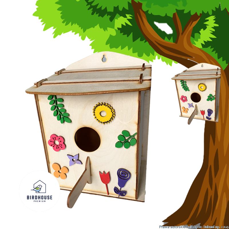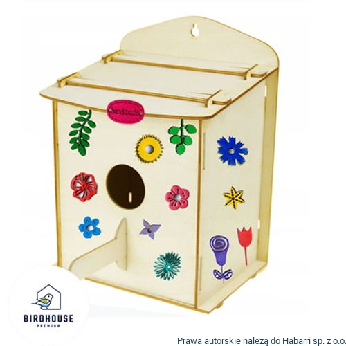 Zachęcamy każde dziecko do stworzenia swojej własnej koncepcji domku dla ptaków. Proponowany zestaw można wykorzystać na domek niemalowany (kolor jasno beżowy sklejki) lub dowolnie pomalowany.