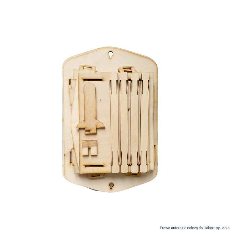 - Materiały: drewno (sklejka brzozowa, 3 mm), sznurek