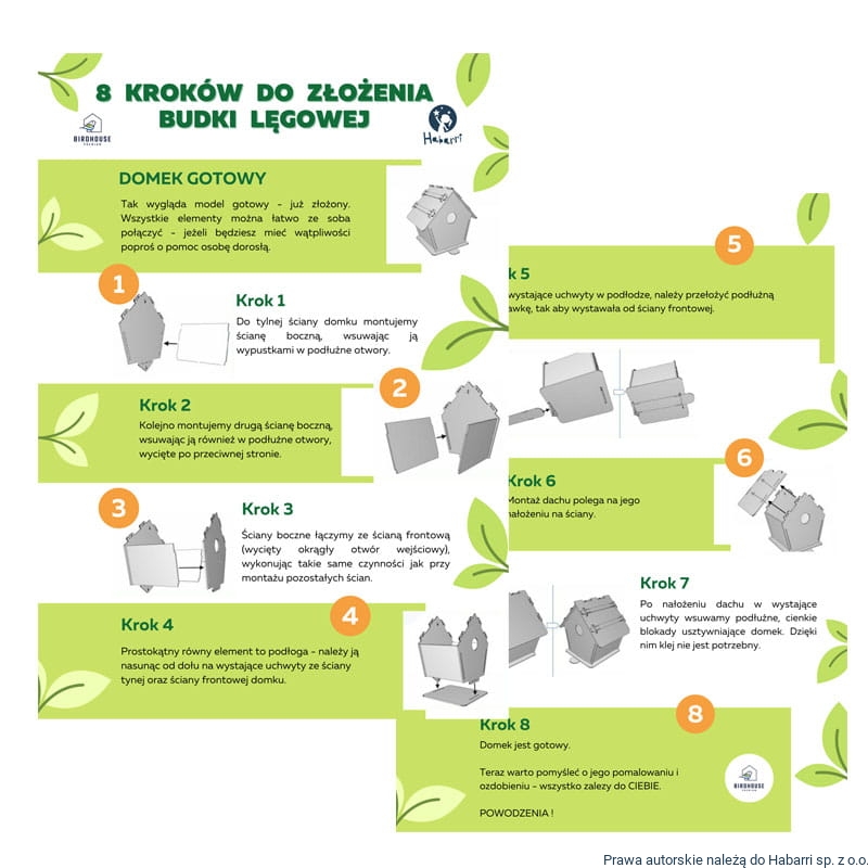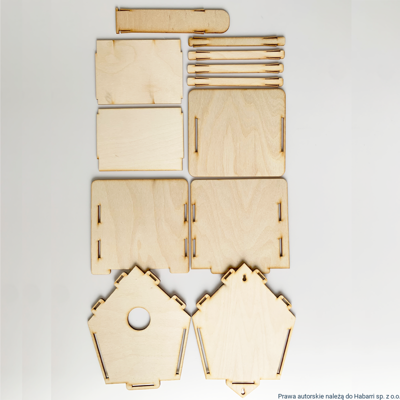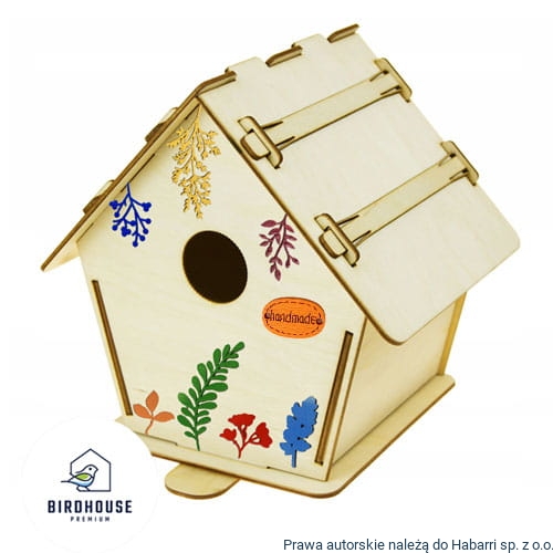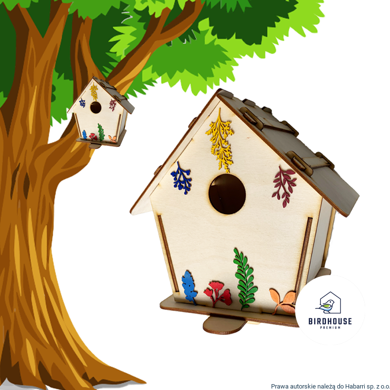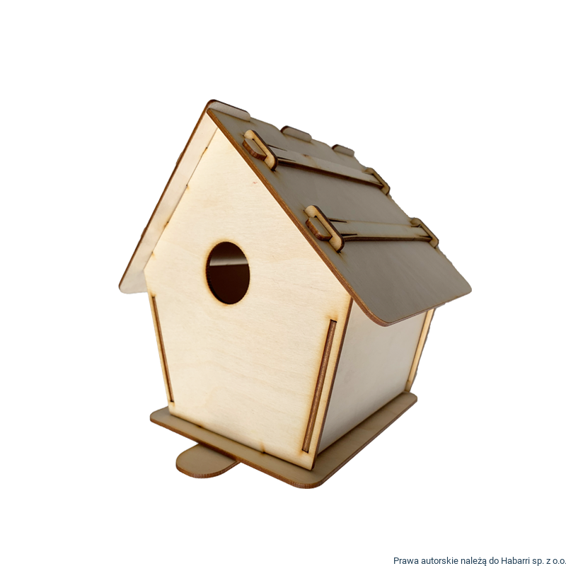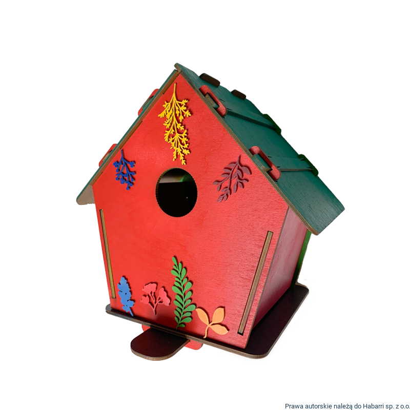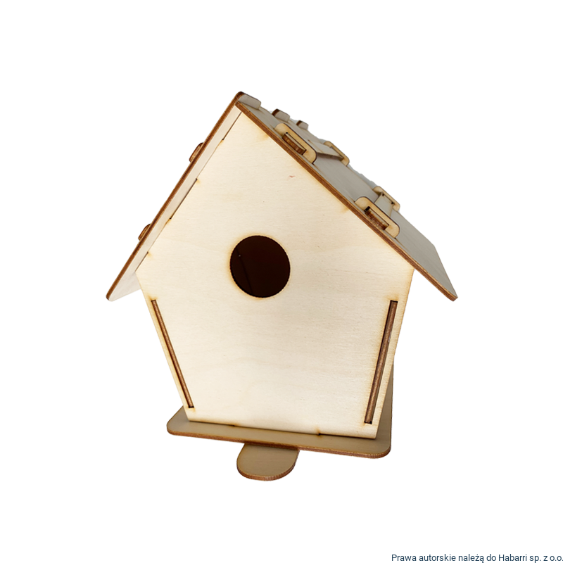 Zachęcamy każde dziecko do stworzenia swojej własnej koncepcji domku dla ptaków. Proponowany zestaw można wykorzystać na domek niemalowany (kolor jasno beżowy sklejki) lub dowolnie pomalowany.