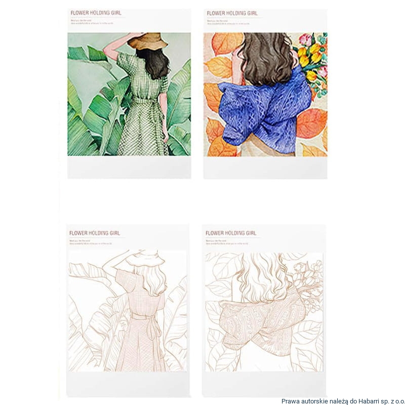- Nadrukowane scenki rodzajowe, postaci, zwierzęta itp - krawędzie nadrukowanych elementów są wyraźne, łatwe do kolorowania