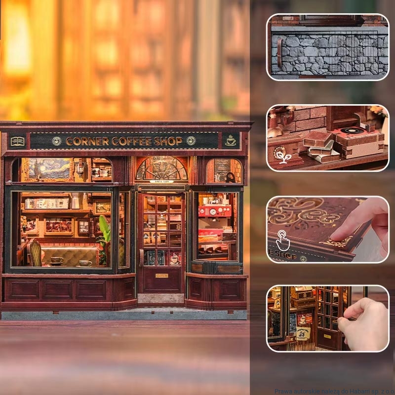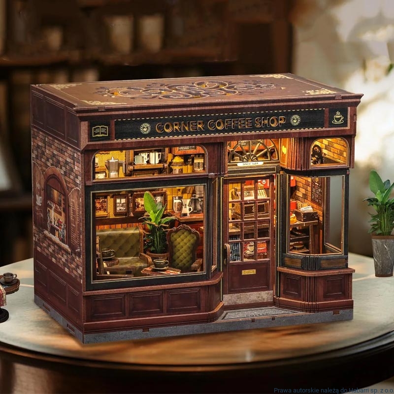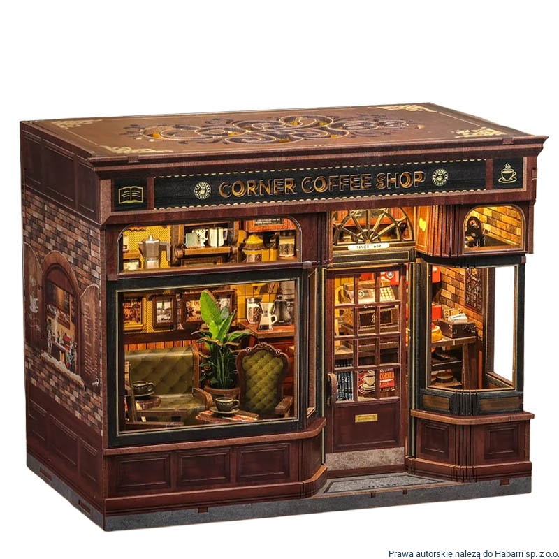 - Model składający się z gotowych, ciętych laserowo, malowanych elementów, umieszczonych na planszach - składanie domku polega na umieszczeniu elementów drewnianych w otworach konstrukcji domku, wg kroków wskazanych w instrukcji