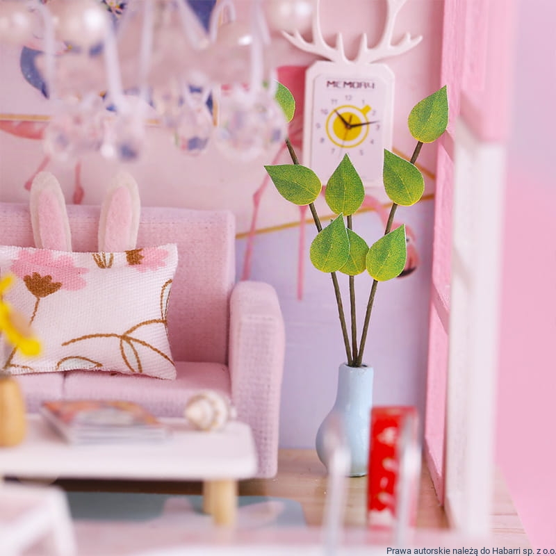 Aby cieszyć się miniaturowym domkiem DIY, musisz poświęcić chwilę na jego złożenie. Domek dostępny w sklepie internetowym Habarri należy do serii modnych, miniaturowych domków DIY — czyli Zrób To Sam. Jest to łatwe i przyjemne zadanie, bo wszystkie drewniane elementy potrzebne do jego wykonania są przygotowane i odpowiednio zapakowane do ponumerowanych woreczków. Do zestawu dołączone są elementy z plastiku, tkaniny czy koralików, abyś mógł urządzić swoje miejsce na świecie. Otrzymasz również narzędzia pomocne i niezbędne w składaniu tego miniaturowego domku, takie jak nóż do cięcia papieru, nożyczki, klej uniwersalny do drewna i papieru, linijkę i śrubokręt. Ponieważ róż uwielbia towarzystwo złotego, dlatego po zmroku — dzięki wbudowanym lampkom LED — domek rozświetli ciepłe światło. Tworzenie brazylijskiego, miniaturowego domku DIY będzie łatwiejsze z ilustrowaną, polskojęzyczną instrukcją.