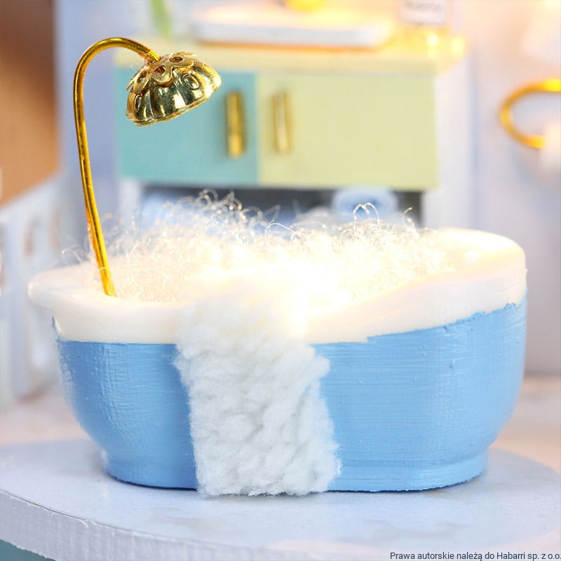 Każdy z domków składamy przed wystawieniem go do sprzedaży - sugerujemy rozpoczęcie składania domku od zbudowania jego konstrukcji - nie należy doklejać kolejnych pięter domku, jeżeli wyposażenie niższego piętra nie zostało zamocowane, w tym kabelki z oświetleniem. Proponujemy także aby duże powierzchnie (dywany, podłogi, tapety itp) przyklejać punktowo - w kilku miejscach (z uwagi na marszczenie się papieru i zużycie kleju). Drobne elementy sugerujemy sklejać małą ilością kleju aby nie zanieczyścić przedmiotu.
