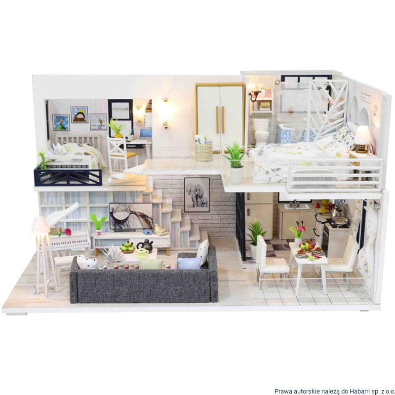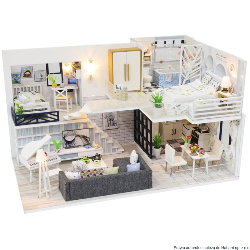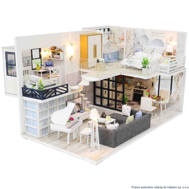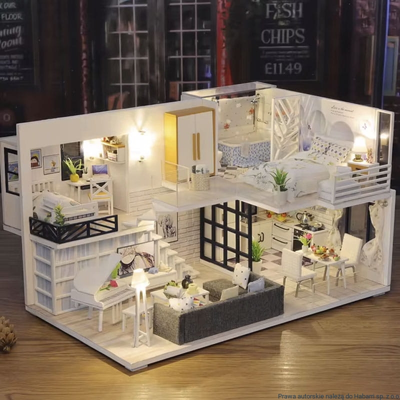 Każdy z domków składamy przed wystawieniem go do sprzedaży - sugerujemy rozpoczęcie składania domku od zbudowania jego konstrukcji - nie należy doklejać kolejnych pięter domku, jeżeli wyposażenie niższego piętra nie zostało zamocowane, w tym kabelki z oświetleniem. Proponujemy także, aby duże powierzchnie (dywany, podłogi, tapety itp) przyklejać punktowo - w kilku miejscach (z uwagi na marszczenie się papieru i zużycie kleju). Drobne elementy sugerujemy sklejać małą ilością kleju aby nie zanieczyścić przedmiotu. W razie jakichkolwiek wątpliwości prosimy o kontakt.