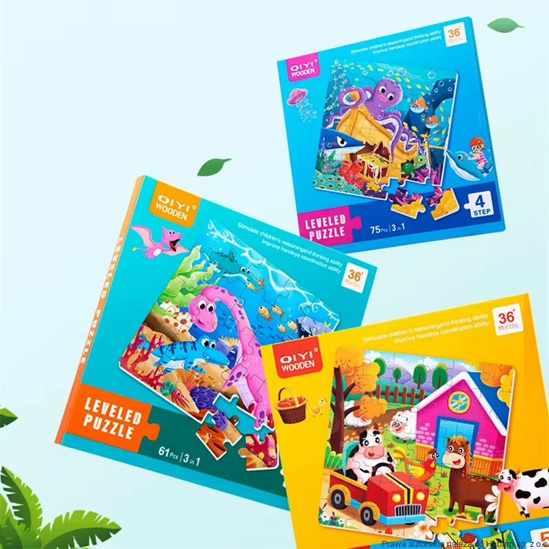 - puzzle edukacyjne 3 w 1 - w formie trójstronnych książeczek - POZIOM II