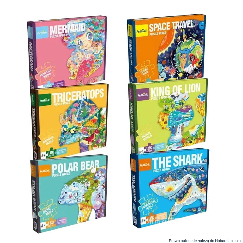 Puzzle firmy Arthink to bardzo ciekawa i rozwijająca propozycja zabawy dla dzieci i dorosłych. Puzzle kształtem przedstawiają zwierzątko lub przedmiot. Żywe kolory, wiele scenek, które mogą być podstawą do snucia niezliczonych opowieści podczas ich składania i później obserwowania.