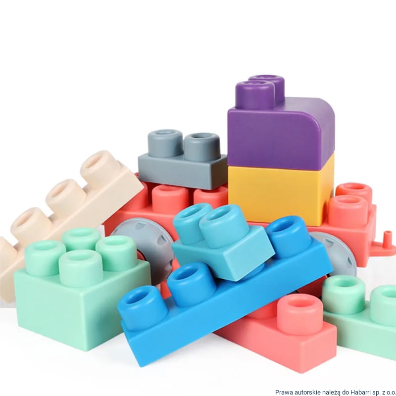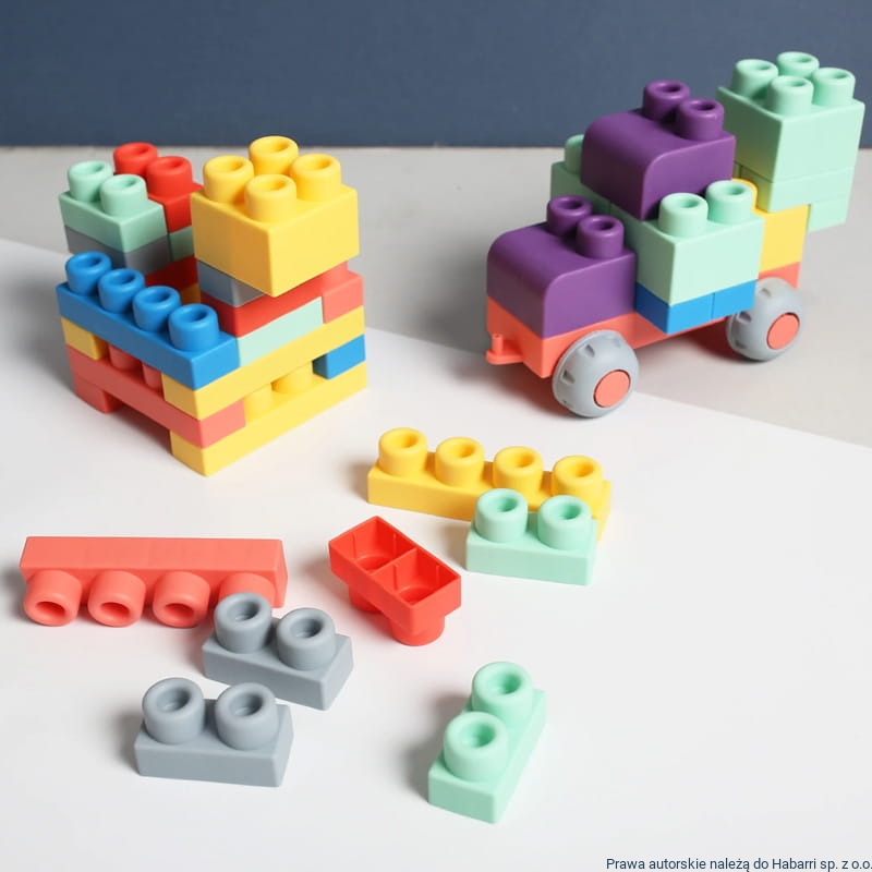Soft building blocks - nowoczesne duże klocki typu soft - miękki, satynowy plastik, nie zmieniają koloru podczas wyparzania.