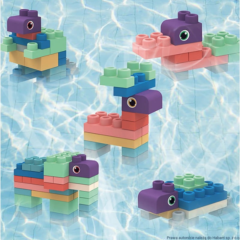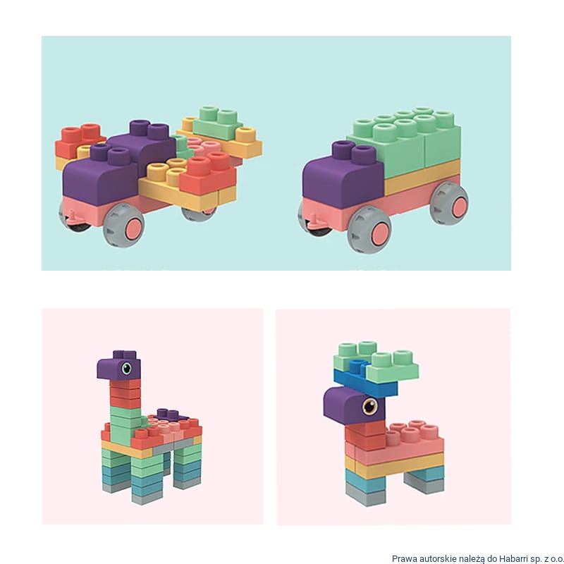 - Zawartość opakowania: klocki + naklejki (oczy) + instrukcja obrazkowa