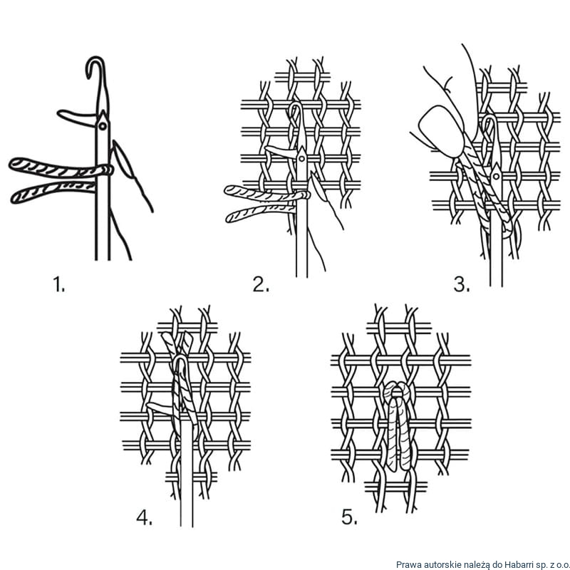3. Pracę najlepiej rozpocząć od najniższego rzędu oczek, wyłącznie w poziomych liniach, zawsze w jednym kierunku