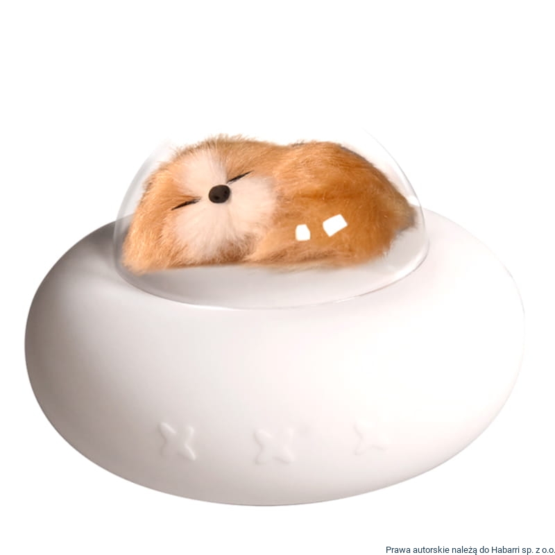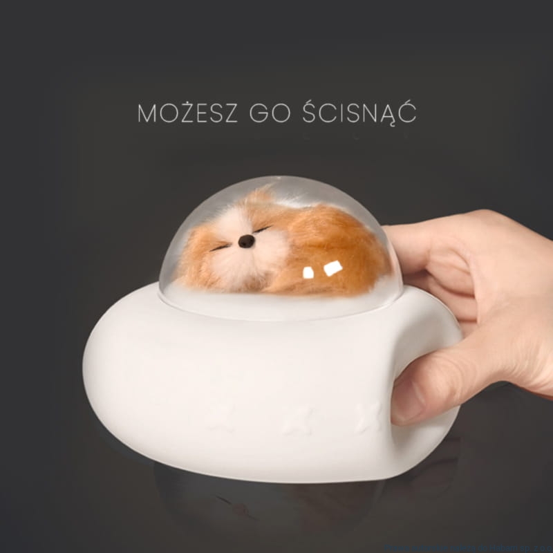Śliczna lampka składająca się z dwóch części, miękkiej silikonowej, w kolorze białym oraz sztywnej przeźroczystej, zakładanej w formie osłony na pluszonego pieska.