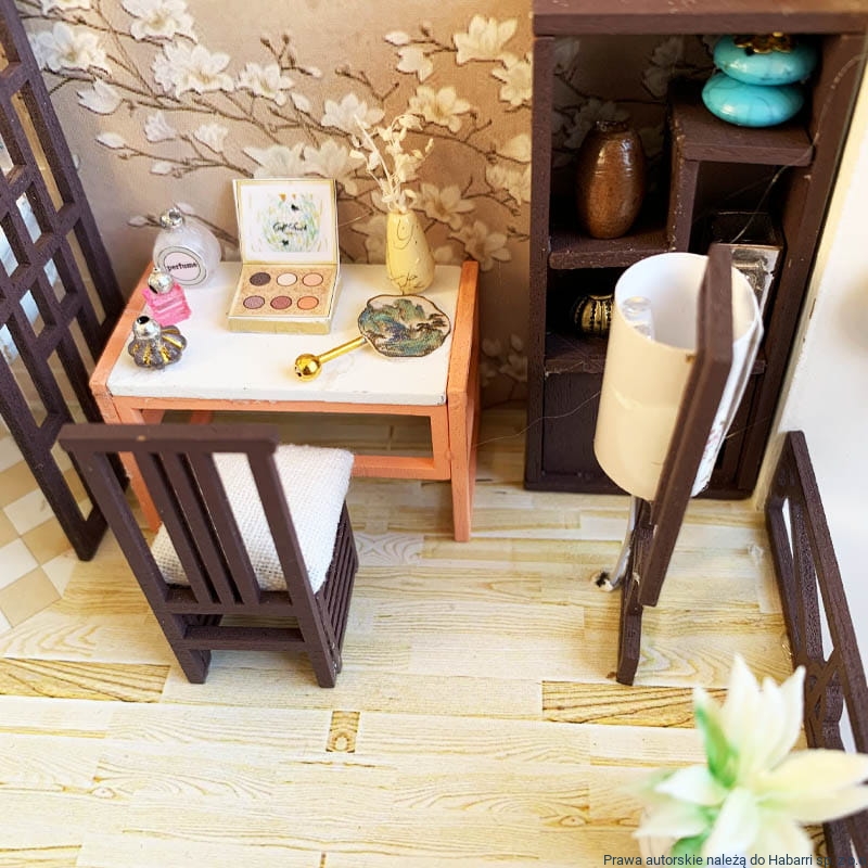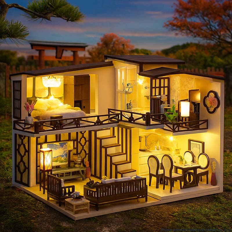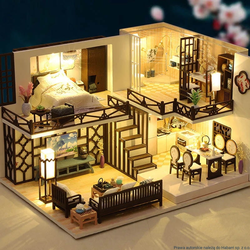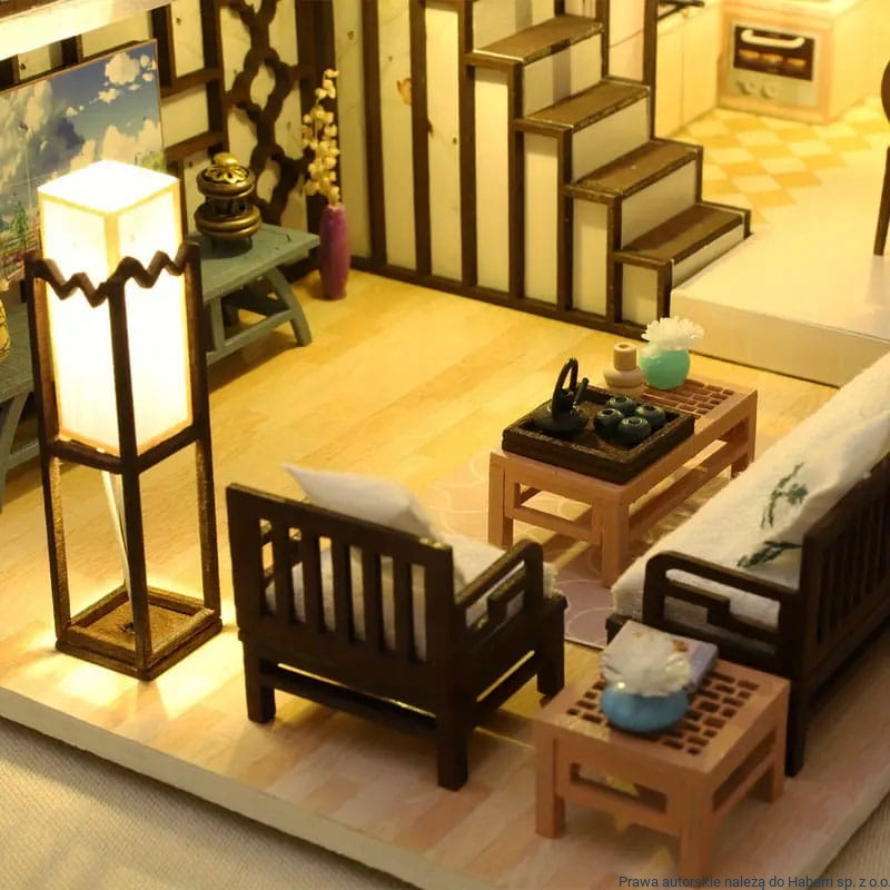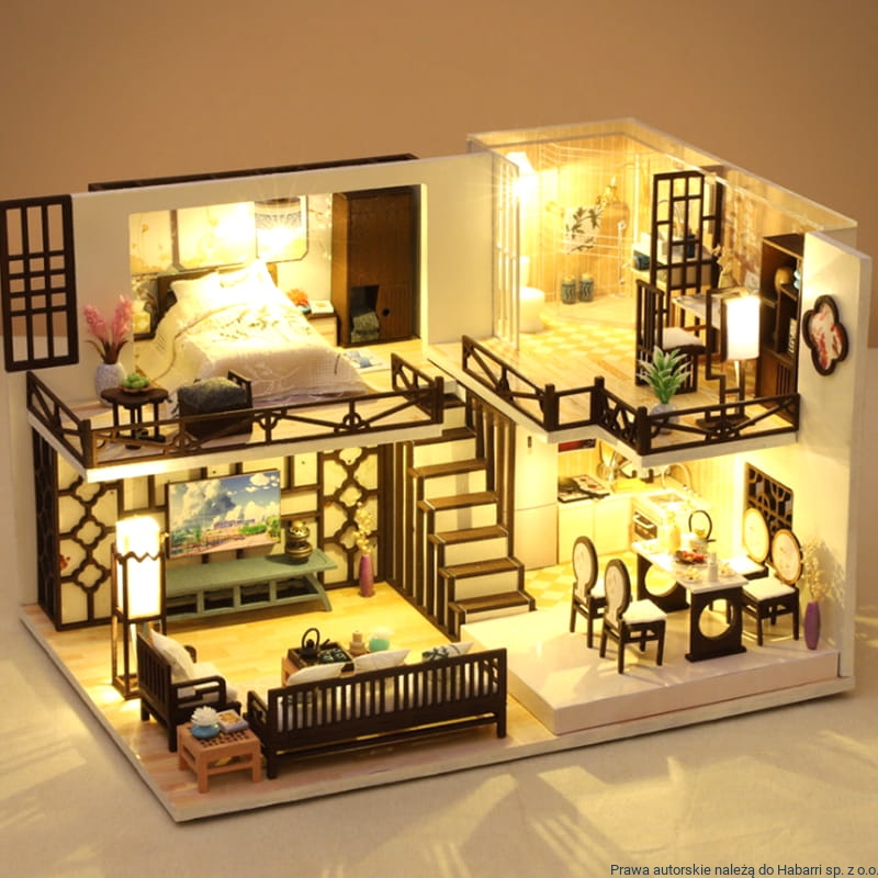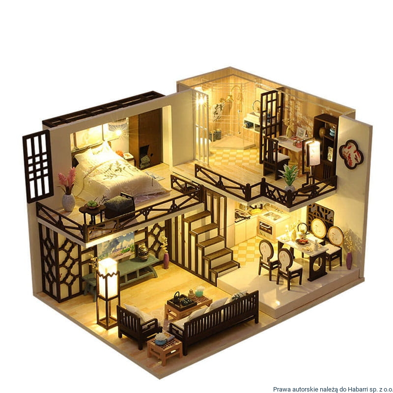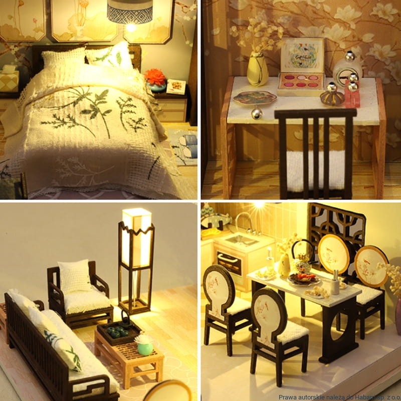 Każdy z domków składamy przed wystawieniem go do sprzedaży - sugerujemy rozpoczęcie składania domku od zbudowania jego konstrukcji - nie należy doklejać kolejnych pięter domku, jeżeli wyposażenie niższego piętra nie zostało zamocowane, w tym kabelki z oświetleniem. Proponujemy także, aby duże powierzchnie (dywany, podłogi, tapety itp) przyklejać punktowo - w kilku miejscach (z uwagi na marszczenie się papieru i zużycie kleju). Drobne elementy sugerujemy sklejać małą ilością kleju aby nie zanieczyścić przedmiotu.