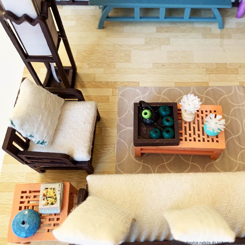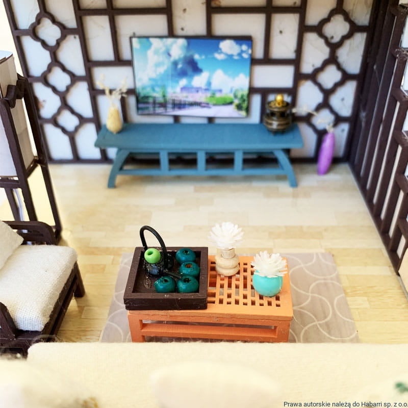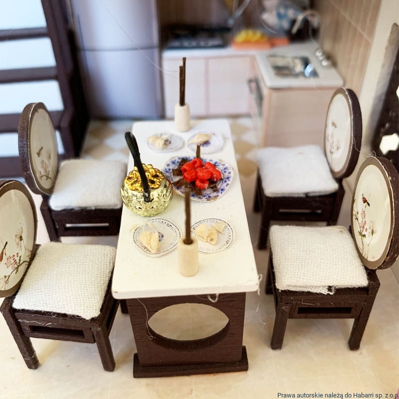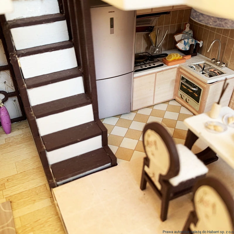 - Na początku warto skleić konstrukcję domu, a następnie kleić elementy wnętrza i wyposażenia