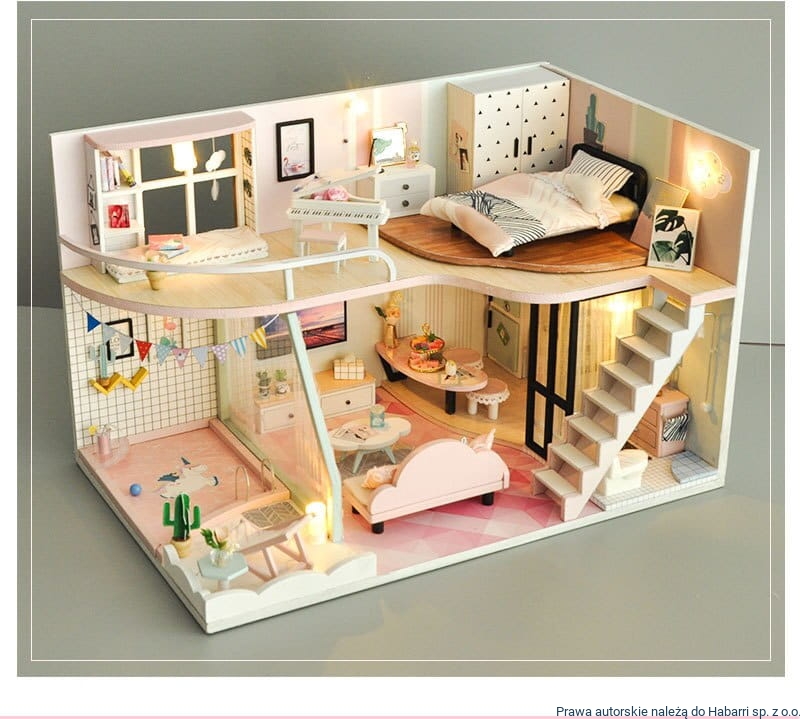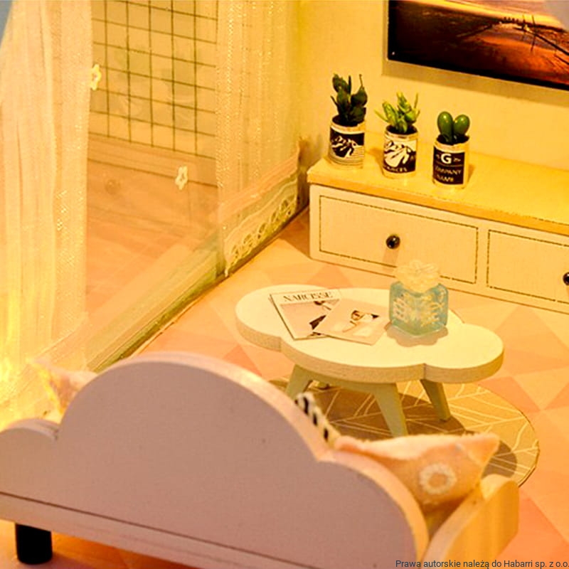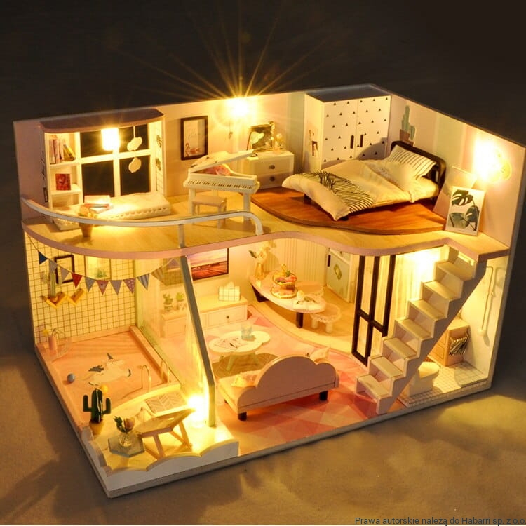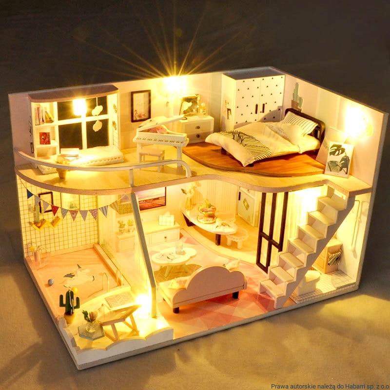Każdy z domków składamy przed wystawieniem go do sprzedaży - sugerujemy rozpoczęcie składania domku od zbudowania jego konstrukcji - nie należy doklejać kolejnych pięter domku, jeżeli wyposażenie niższego piętra nie zostało zamocowane, w tym kabelki z oświetleniem. Proponujemy także aby duże powierzchnie (dywany, podłogi, tapety itp) przyklejać punktowo - w kilku miejscach (z uwagi na marszczenie się papieru i zużycie kleju). Drobne elementy sugerujemy sklejać małą ilością kleju aby nie zanieczyścić przedmiotu. W razie jakichkolwiek wątpliwości prosimy o kontakt.