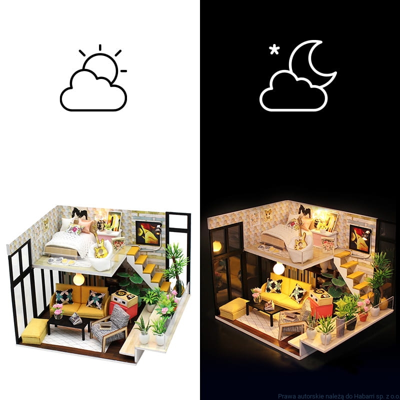 Uprzejmie zwracamy uwagę, że klej, narzędzia, polska instrukcja, polskie opakowanie jest częścią zestawu tylko i wyłącznie do modelu zakupionego bezpośrednio w naszej firmie – Habarri. Jesteśmy największym dostawcą domków miniaturowych oraz domków typu Book Nook w Polsce.