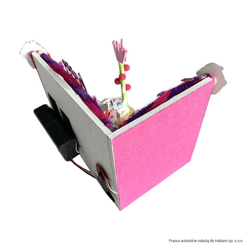 Domki z naszej oferty posiadają tylne ściany (najczęściej dwie) w kolorze białym lub kolorze sklejki (jasno beżowym), również do tylnej ściany doklejane jest niewielkie czarne, plastikowe pudełko w którym umieszcza się baterie. Ściany te są widoczne tylko wtedy, gdy domek obrócimy. Wymagających klientów, lub gdy domek będzie będzie wyeksponowany z każdej strony, zachęcamy do wyklejenia ścian zewnętrznych cienkim filcem w kolorze dopasowanym do kolorystyki wnętrza domku.