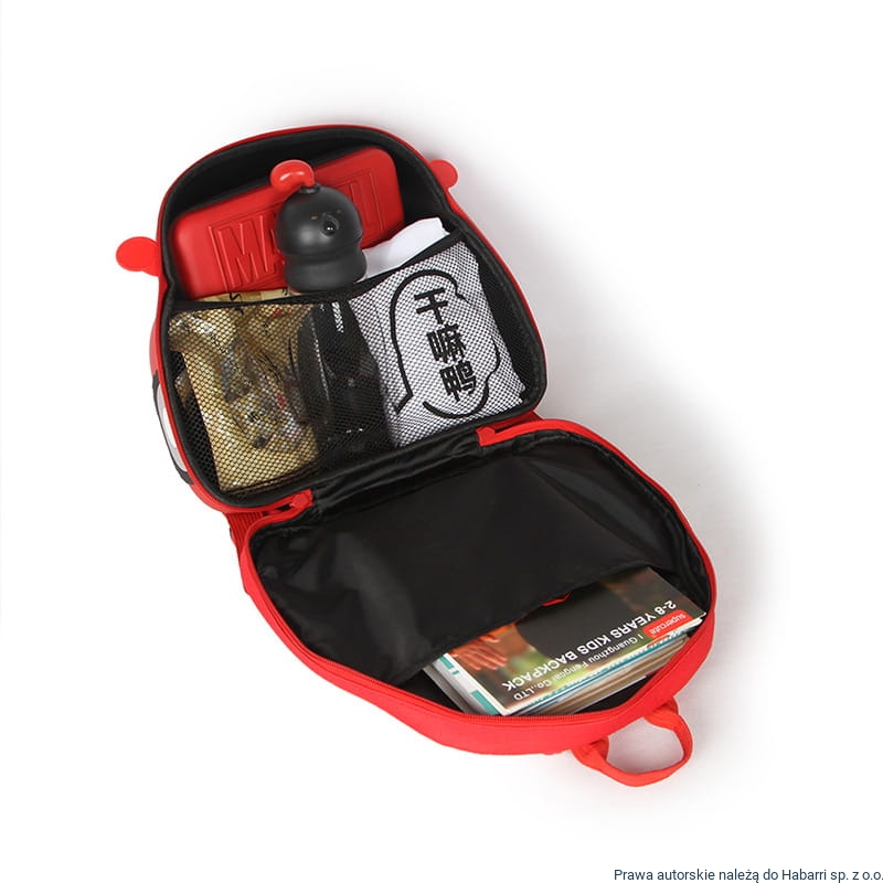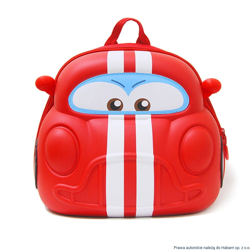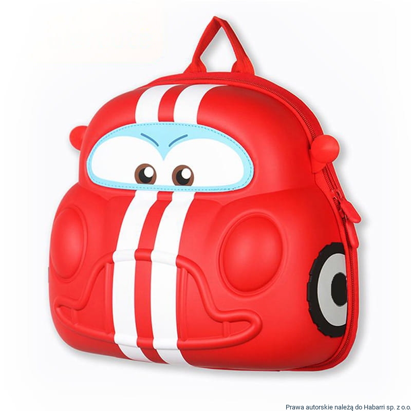 Dzieci bardzo lubią przebierać się oraz puszczając wodze fantazji ożywiać różne przedmioty i udawać je. Dzięki temu mają możliwość wykorzystania swojego twórczego potencjału i pokazania swojej wrażliwości. Jednocześnie ich fantazje bazują na umiejętności obserwacji otaczającego świata. Zabawa np. w samochodziki stymuluje rozwój osobowości dziecka. Inspiracją do niej może być plecak „Auto”, model, który spodobać może się nie tylko chłopcu, ale również dziewczynce. Plecak ma kształt przodu samochodu, dodatkowo posiada tłoczenia oddające jego prawdziwe elementy konstrukcyjne, jak światła, zderzak czy wlot powietrza. Przez środek maski biegną dwa białe równoległe pasy, oddające sportowy charakter autka, a po bokach plecaka znajdziemy prawdziwe koła z oponami. To jednak nie wszystko, to przecież nie autko, a „Auto”, zatem nad maską, w miejscu szyby znajdują się uśmiechnięte oczy Pana samochodzika. Zdobienie plecaka uzupełniają lusterka wsteczne, a czerwony, wyrazisty kolor plecaka, daje szansę na łatwe dostrzeżenie naszego dziecka w otoczeniu.