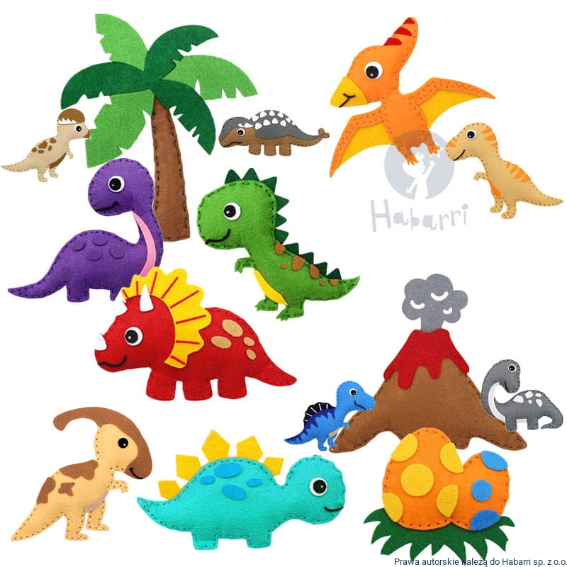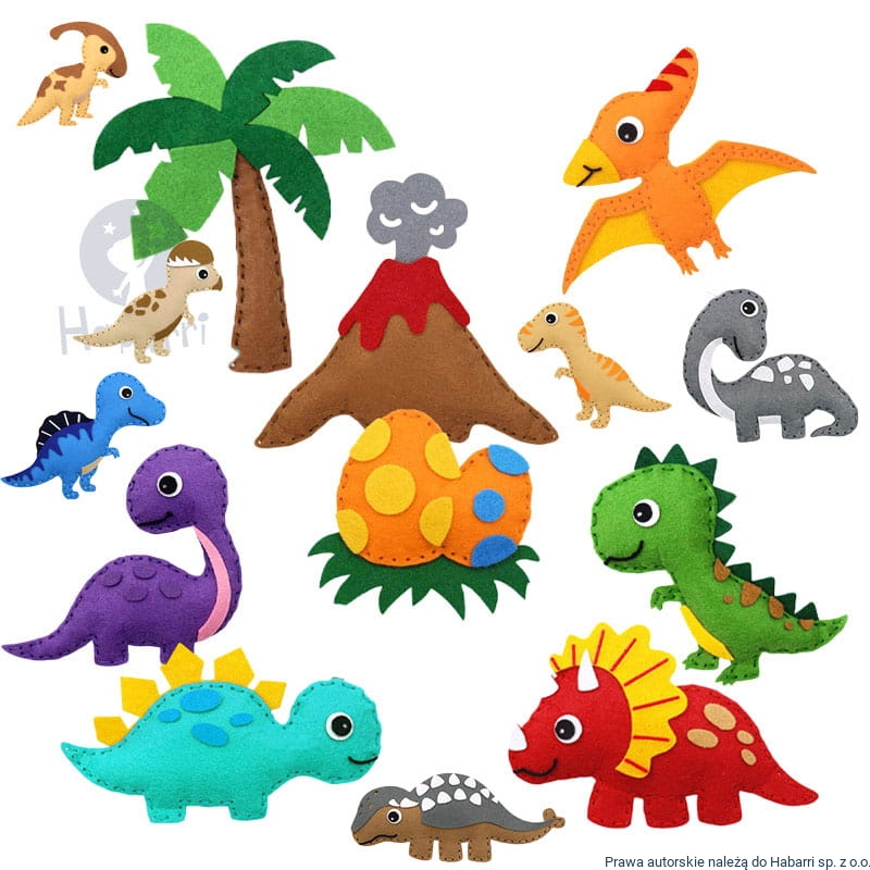 DINOZAURY - filcowy zestaw do szycia DIY - 14 elementów